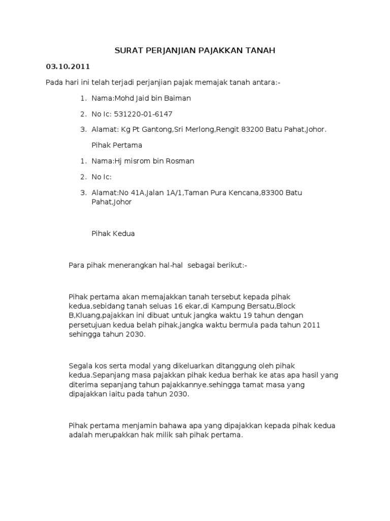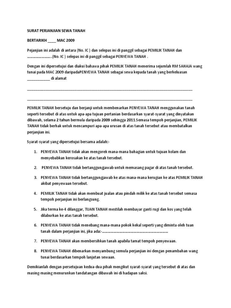 Surat Perjanjian Sewa Kebun Sawit Pdf
